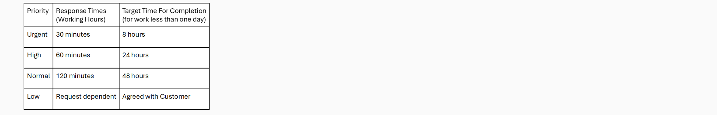 18.4 Support will be provided between the hours of 09:00 and 17:00, Monday to Friday excluding Northern Ireland Public Holidays. Those being New Years Day, St. Patricks Day, Good Friday, Easter Monday, Early May Bank Holiday, 12th and 13th July (or agreed public holiday dates), Christmas Day, and Boxing Day. This will also be extended to cover any additional public holidays which are added.